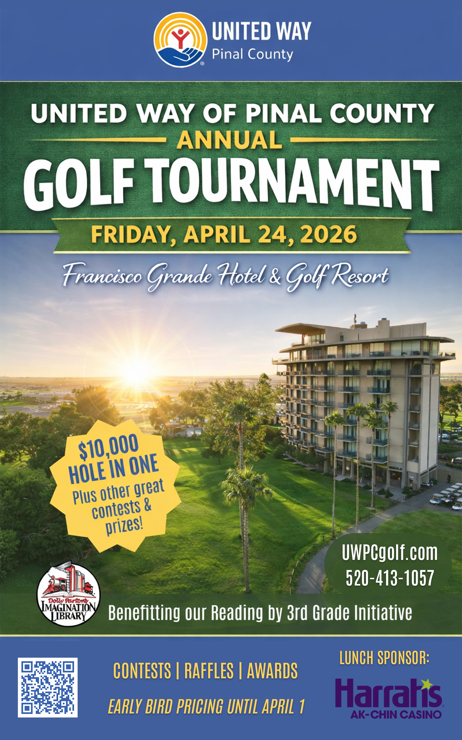 All funds raised at the event will support the mailing of new books to the homes of children under 5 across Pinal County to support literacy, developing a love for books and preparing children for success in kindergarten and beyond.